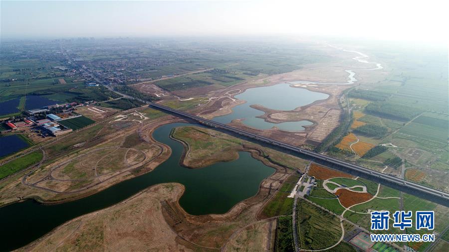 這是9月1日拍攝的石家莊市滹沱河生態修復二期工程藁城段(無人機照片)。 日前,河北省石家莊市滹沱河生態修復二期工程完工,目前正在進行綠化養護和細節整理。 滹沱河生態修復二期工程西起石家莊藁城城區東,東至深澤與衡水安平縣界,工程主要對河槽進行疏浚和岸坡防護,打造溪流區和生態湖區,在調節氣候、保持水土、護河防洪等方面具有重要作用。 新華社記者 駱學峰 攝