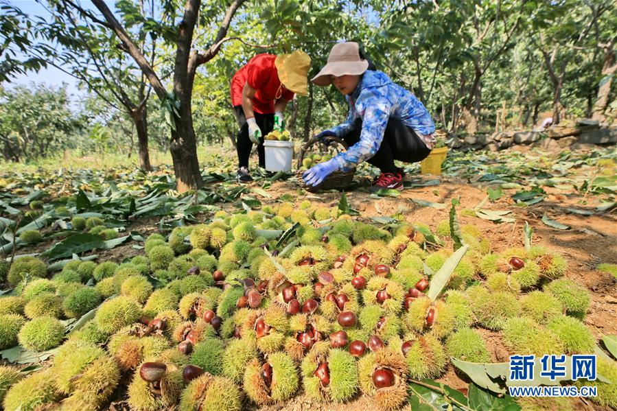 9月6日,河北省遷西縣三屯營鎮(zhèn)彭莊村農(nóng)民在收獲板栗。 近日,有著“板栗之鄉(xiāng)”美譽(yù)的河北省遷西縣75萬畝板栗迎來收獲季,當(dāng)?shù)剞r(nóng)民利用晴好天氣收獲板栗。近年來,遷西縣推進(jìn)板栗產(chǎn)業(yè)規(guī)模化、鏈條化發(fā)展,讓板栗成為農(nóng)民增收的重要產(chǎn)業(yè)。 新華社記者 牟宇 攝