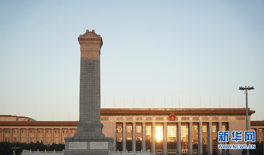 晨光中的人民大會堂和人民英雄紀念碑(9月8日攝)。 全國抗擊新冠肺炎疫情表彰大會將于9月8日上午10時在北京人民大會堂隆重舉行。 新華社記者 鞠煥宗 攝