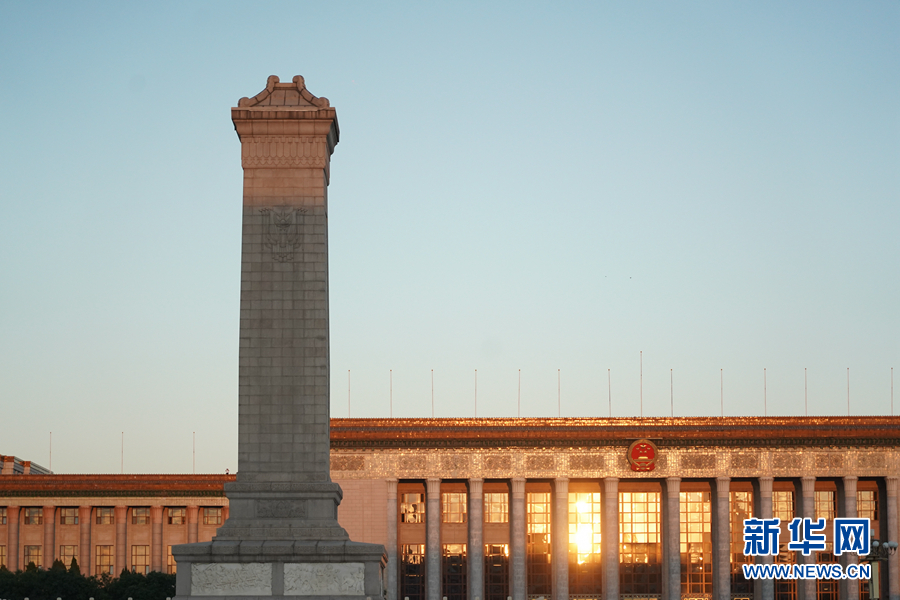 晨光中的人民大會堂和人民英雄紀念碑(9月8日攝)。 全國抗擊新冠肺炎疫情表彰大會將于9月8日上午10時在北京人民大會堂隆重舉行。 新華社記者 鞠煥宗 攝