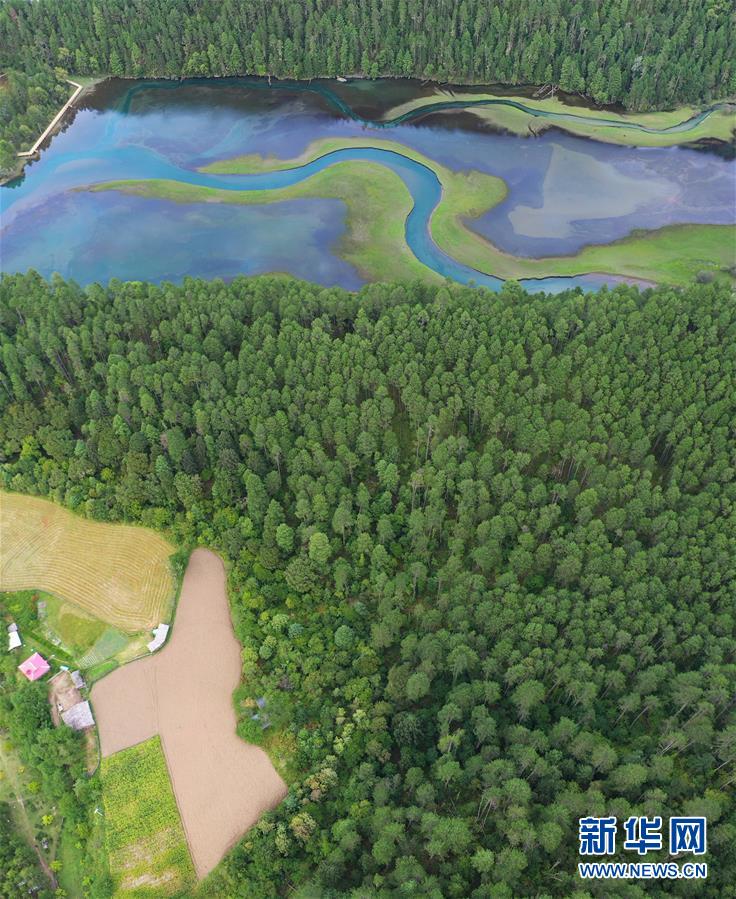 這是林芝市波密縣草湖風景(9月9日攝,無人機照片)。 草湖位于西藏林芝市波密縣崗云杉林景區,這里秋季雨水充沛,在原始森林的包圍中顯得格外神秘與美麗。 新華社記者 普布扎西 攝