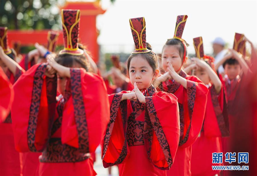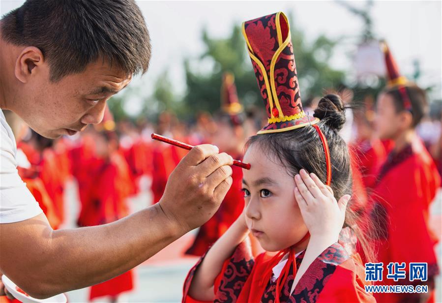 9月9日,武安市中山小學新生參加“入泮禮”。新華社記者 王曉 攝