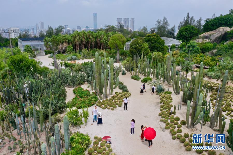 9月9日,游客在廈門園林植物園多肉植物區游覽拍照(無人機照片)。 廈門園林植物園位于廈門島東南隅的萬石山中,始建于1960年,占地4.93平方公里,擁有7000多種熱帶、亞熱帶觀賞植物,成為游客游玩、拍照的熱門園區。 新華社記者 姜克紅 攝