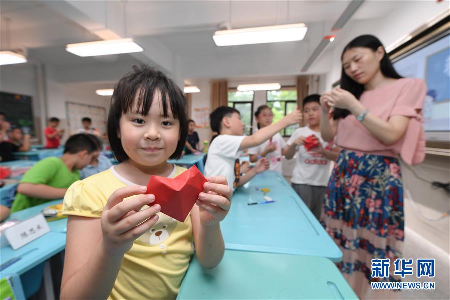 9月9日,在福州市烏山小學(xué),三年級(jí)學(xué)生在老師指導(dǎo)下制作“愛心”。 教師節(jié)前夕,福建省福州市中小學(xué)校紛紛開展尊師重教主題活動(dòng),向老師表達(dá)感恩之心。 新華社記者 宋為偉 攝