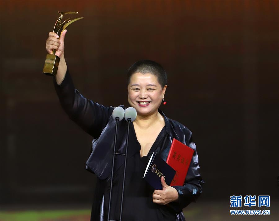 9月10日,憑借《春潮》獲得最佳導演獎的楊荔鈉出席頒獎典禮。 新華社記者 雒圓 攝
