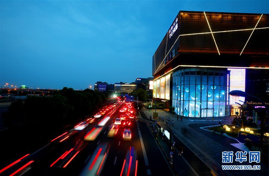 這是連接虹橋商務區和國家會展中心(上海)的人行天橋(9月10日攝)。 上海虹橋商務區位于虹橋交通樞紐和進博會舉辦地國家會展中心(上海)之間,地理位置十分優越,隨著兩屆進博會的成功舉辦,上海虹橋商務區已經成為上海西部地區發展勢頭強勁的商業和購物休閑中心。入夜時分燈光輝映下的上海虹橋商務區盡顯活力。 新華社記者 方喆 攝