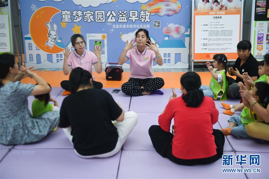 9月15日,龍泉街道市陌河社區公益早教班的老師正在給社區內的幼兒上早教公益課程。 從2019年底開始,浙江省湖州市龍泉街道在下轄社區試點開辦公益早教班,為社區內0-3歲的幼兒開展常態化和免費的早教服務,讓社區幼兒在家門口就能享受到公益早教課程,有效補充了社區幼兒的學前教育空白,進一步打造社區教育服務新模式,解決社區居民的后顧之憂。 新華社記者 徐昱 攝