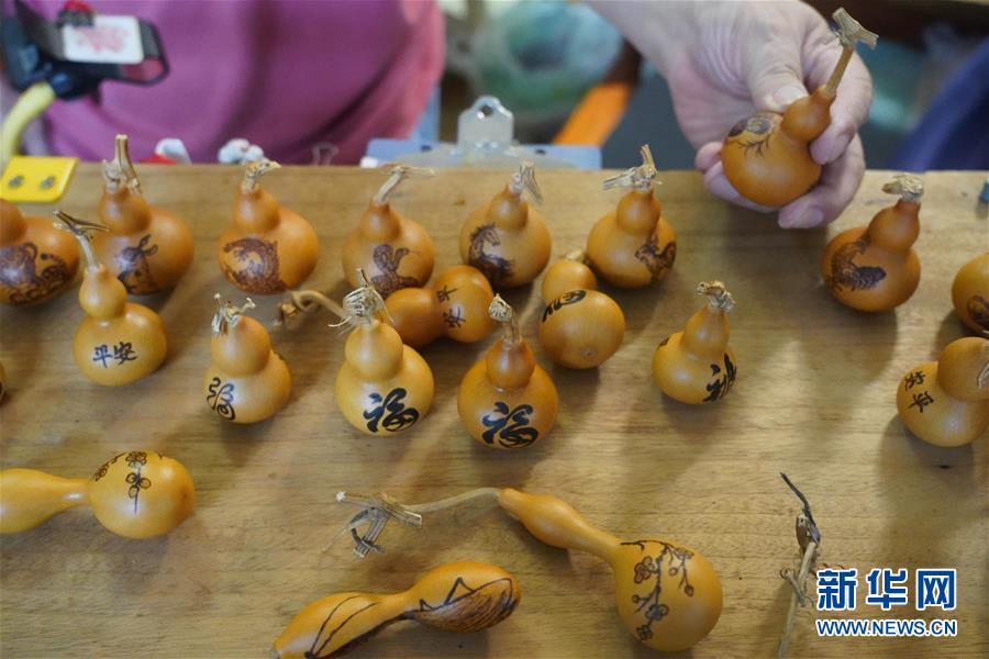 這是劉振創(chuàng)作的葫蘆作品(9月16日攝)。 71歲的劉振居住在江西省南昌市青山湖區(qū)塘山鎮(zhèn)高新社區(qū),因?yàn)槌D晔褂煤J進(jìn)行創(chuàng)作,他被人們親切地稱為”葫蘆爺爺“。2004年,劉振在一次意外中脊柱受傷,之后大部分時(shí)間不得不待在家里。不甘寂寞的劉振嘗試用烙鐵在葫蘆上進(jìn)行創(chuàng)作,題材豐富多彩。如今,劉振已經(jīng)創(chuàng)作了數(shù)千個(gè)葫蘆,“葫蘆爺爺”用葫蘆創(chuàng)造了一個(gè)精彩的世界。 新華社記者 周密 攝