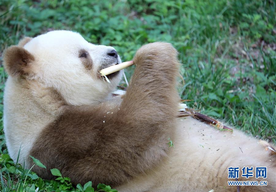 9月17日,“七仔”在位于陜西西安的秦嶺大熊貓研究中心吃竹筍。 生活在陜西西安秦嶺大熊貓研究中心的“七仔”是世界唯一圈養(yǎng)棕色大熊貓。今年11歲的“七仔”因獨特的毛色與憨態(tài)可掬的吃相走紅網(wǎng)絡(luò),深受大家喜愛。在工作人員的悉心照料下,目前“七仔”身體狀況良好。 新華社記者 梁娟 攝