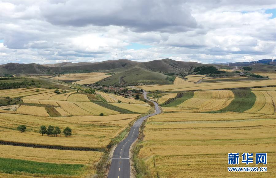 這是9月21日拍攝的河北省壩上地區沽源縣草原天路沿線風光(無人機照片)。 秋分將至,河北省張家口壩上地區景色宜人,秋意正濃。 新華社記者楊世堯攝