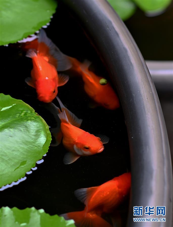 9月23日拍攝的飼養在特制“虎頭缸”里的金魚。 當日,國潮金魚博物館在福建省福州市三坊七巷塔巷正式開館。博物館設有“源”“境”“奇”“銳”4個展廳,為金魚量身定制了形態各異的魚缸,展出來自國內外約100個品種的3000余尾精品金魚。 新華社記者 魏培全 攝