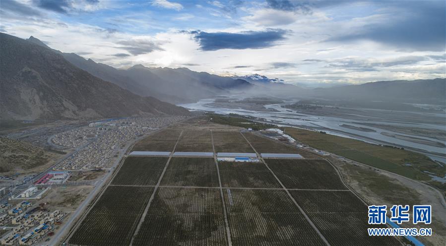 位于山南市貢嘎縣森布日村的矮化蘋果種植園,其左側為安置點民居,右側為雅魯藏布江(9月23日攝,無人機照片)。金秋豐收季,在西藏山南市貢嘎縣森布日村,森布日搬遷安置點附近的千畝矮化蘋果種植園迎來豐收。森布日搬遷安置點是西藏極高海拔地區居民生態搬遷安置點之一。2018年6月,西藏開始實施極高海拔生態搬遷項目。2019年底,來自那曲市安多縣色務鄉,雙湖縣嘎措鄉、雅曲鄉、措折強瑪鄉的共計957戶、4058名群眾搬遷至此。 矮化蘋果種植園是山南市森布日極高海拔生態搬遷點經濟林種植基地建設項目的一部分,目前委托給西藏康其農業發展有限公司管理運營。果園收入的65%將作為分紅交給搬遷群眾。 新華社記者 孫非 攝
