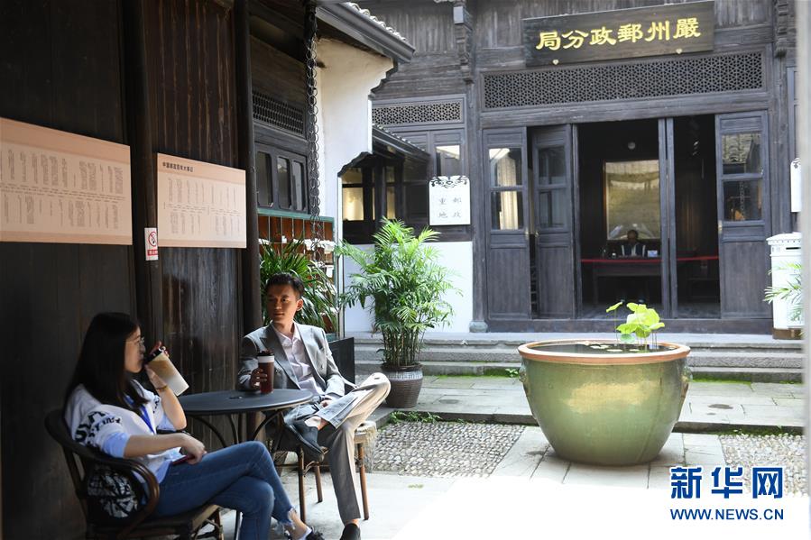 9月30日,游客在由老郵局改建的咖啡館休憩。 當(dāng)日,經(jīng)過兩年多的修繕,浙江建德有千年歷史的嚴(yán)州古城正式開城,重現(xiàn)芳華。 新華社記者翁忻旸攝