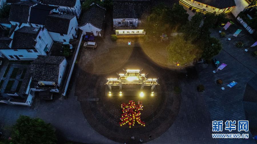 9月29日,龍門鎮文明志愿幫幫團的志愿者提著花燈排成一個“家”字,慶祝古鎮廟會開啟(無人機照片)。國慶期間,這些志愿者將作為景區引導員服務游客。 當日,浙江省杭州市富陽區龍門鎮以“龍門古鎮,喊你回家”為主題的金秋廟會正式開啟。廟會結合當地旅游、文化資源,舉辦賞燈猜謎鬧中秋、民間舞蹈展演、特色民俗展示等系列活動。 新華社記者 徐昱 攝