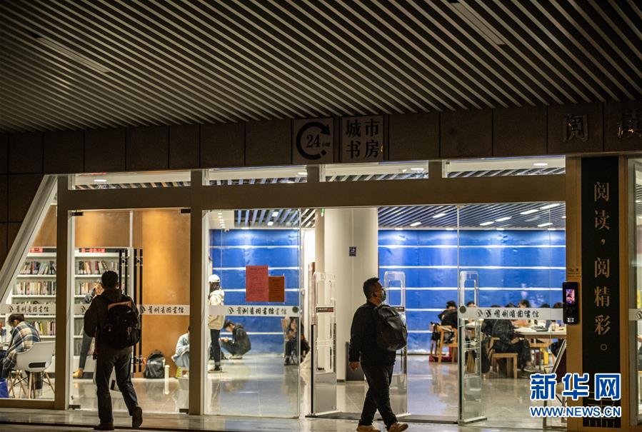 10月8日晚,市民走進(jìn)貴州省圖書館24小時城市書房。 日前,貴州省圖書館打造的24小時城市書房正式對外開放,城市書房配有紙質(zhì)書近萬冊,閱覽座席30余個。城市書房提供24小時圖書自助閱覽、自助借還及自修服務(wù),給市民們帶來了一個全時段閱讀、學(xué)習(xí)的好去處。 新華社記者 陶亮 攝