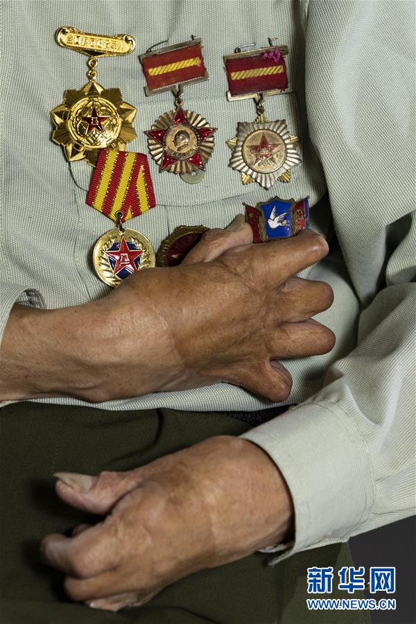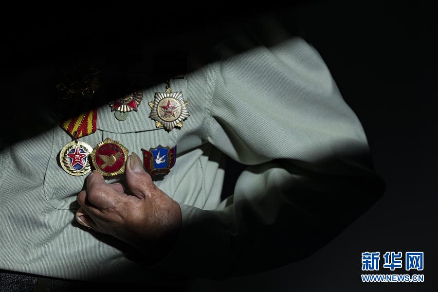 在四川省成都市,志愿軍老戰(zhàn)士涂伯毅撫摩軍功章(9月28日攝)。 涂伯毅,1931年生,重慶云陽人,1950年隨部隊(duì)入朝。涂伯毅經(jīng)歷了抗美援朝戰(zhàn)爭第一、二、三、四次戰(zhàn)役,1951年2月,遭敵人凝固汽油彈襲擊,全身大面積燒傷,致一級傷殘。負(fù)傷后的涂伯毅身殘志堅(jiān),保持積極樂觀的生活態(tài)度,義務(wù)為公眾進(jìn)行愛國主義教育。 新華社記者 沈伯韓 攝