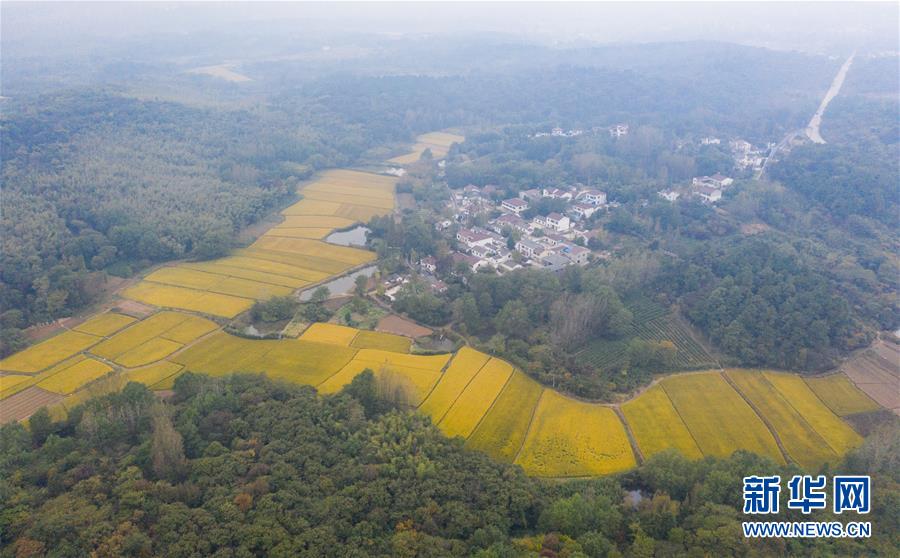 10月27日拍攝的江蘇省句容市下蜀鎮空青村梁莊自然村景色(無人機照片)。新華社記者 季春鵬 攝