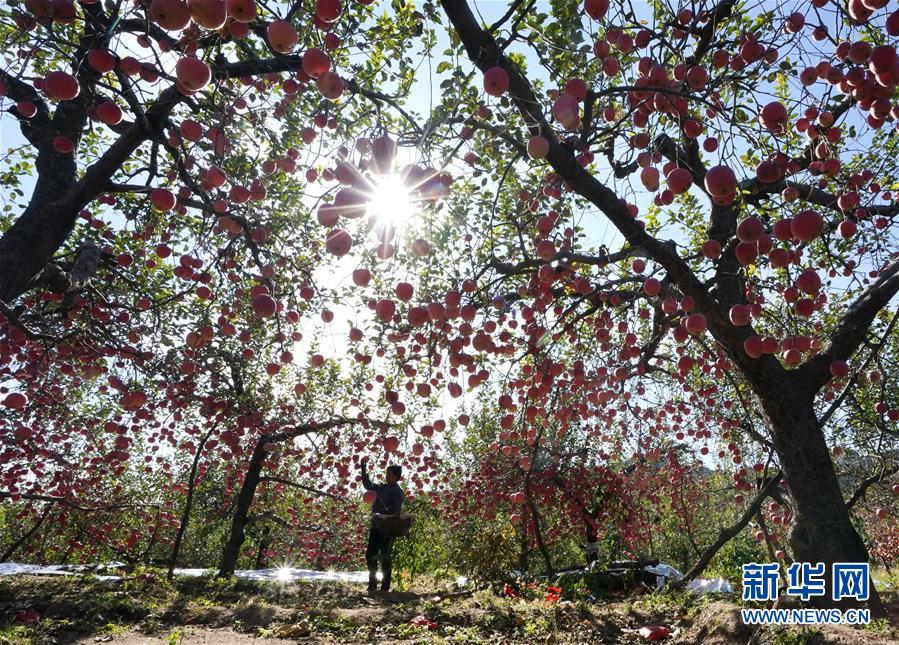 10月30日,昌黎縣兩山鄉長峪山村的一名果農在自家果園采摘蘋果。 近年來,地處燕山腳下的河北省昌黎縣引導山區農民依托良好的自然生態環境和資源優勢,發展林果產業,栽植蘋果、葡萄、桃、梨、板栗等果樹,成為遠近聞名的“花果之鄉”。據介紹,該縣林果種植面積達14余萬畝,年產果品20多萬噸。 新華社記者 楊世堯 攝