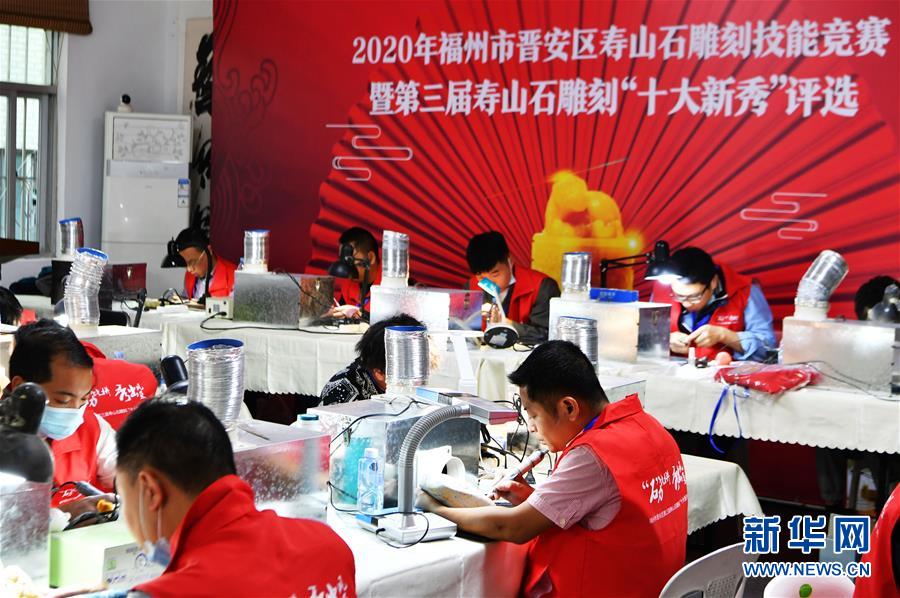 10月31日,參賽選手在壽山石雕刻技能競賽現場比拼雕刻技能。 當日,2020年福州市晉安區壽山石雕刻技能競賽暨第三屆壽山石雕刻“十大新秀”評選活動在福州晉安區東方石藝城正式啟動。45名選手將在4天內現場創作壽山石作品,比拼雕刻技能,角逐“十大新秀”。 壽山石雕刻技藝主要流傳在福州市晉安區鼓山、岳峰鎮、象園、王莊街道和壽山鄉。2006年,壽山石雕列入第一批國家級非物質文化遺產名錄。 新華社記者 魏培全 攝