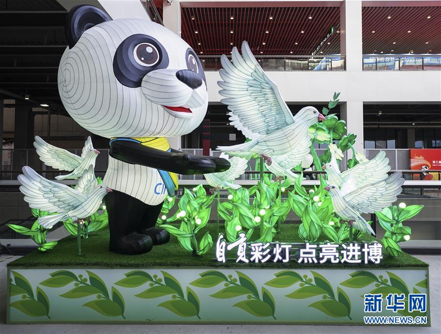 11月3日在國家會展中心(上海)拍攝的彩燈。 第三屆中國國際進(jìn)口博覽會現(xiàn)場的多處彩燈為展會增添了色彩與魅力。 新華社記者 張豪夫 攝