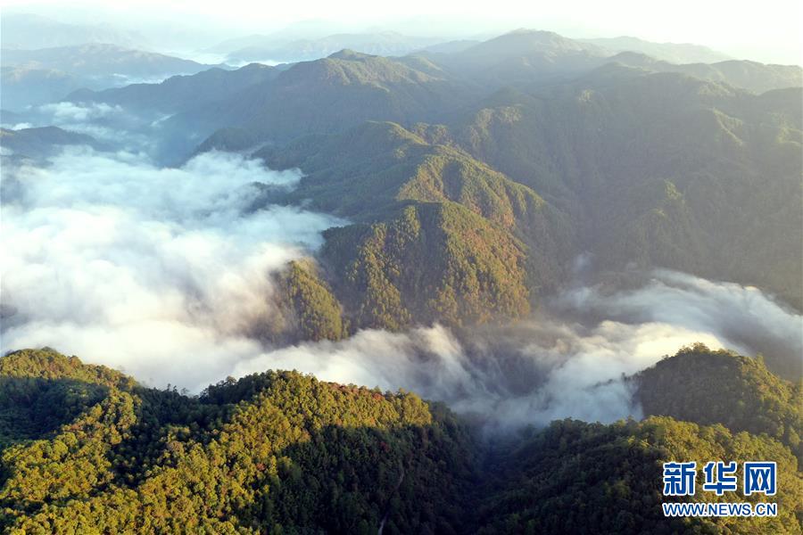這是在福建省連城縣莒溪鎮(zhèn)太平僚村拍攝的梅花山自然保護(hù)區(qū)森林景觀(11月5日攝,無人機(jī)照片)。 梅花山自然保護(hù)區(qū)位于閩西上杭、連城、新羅三縣(區(qū))交界處,平均海拔900米,總面積220余平方公里,森林覆蓋率達(dá)93.5%,猶如一顆綠色翡翠鑲嵌在閩西大地上。 新華社記者 彭張青 攝