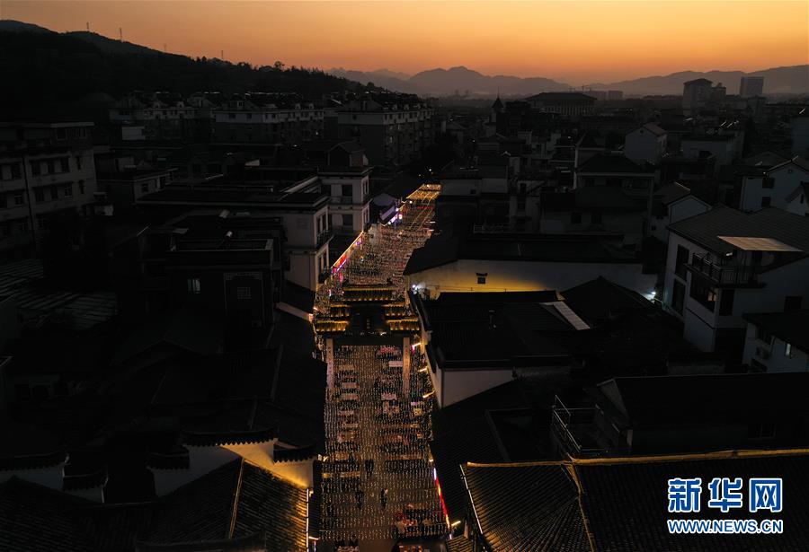 11月10日拍攝的壽昌夜街(無人機照片)。 浙江省建德市壽昌鎮是一個地處偏遠的山區鄉鎮,為了促進美麗城鎮建設、激發夜間經濟活力,壽昌鎮集中打造夜間餐飲特色街區,遷入30余家特色餐館,增設統一樣式的夜間流動攤位,并對街區進行亮化美化,吸引本地和周邊縣市游客光臨。壽昌夜街自“五一”開街以來,共接待游客72萬余人次,實現旅游收入7633余萬元,成為當地夜間經濟的金名片。 新華社記者 翁忻旸 攝