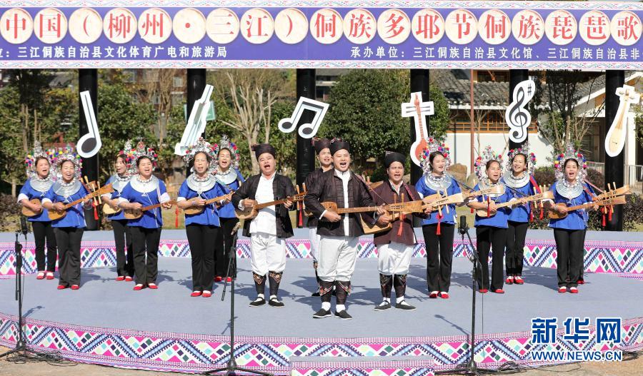 當(dāng)日,廣西三江侗族自治縣舉辦“看家鄉(xiāng)風(fēng)貌 話小康生活”侗族琵琶歌表演賽,當(dāng)?shù)?7支代表隊近200名侗族琵琶歌手同臺競技,歌唱脫貧攻堅給家鄉(xiāng)帶來的新變化。