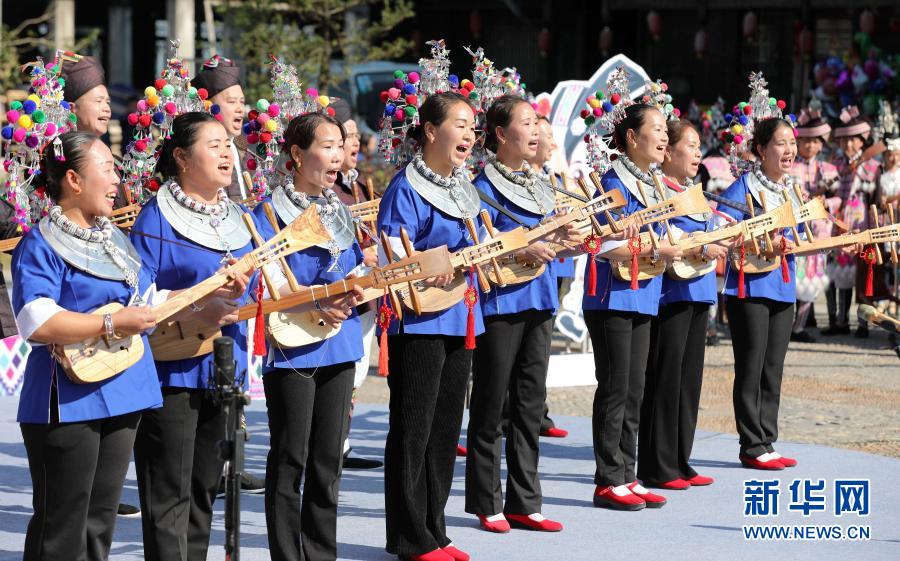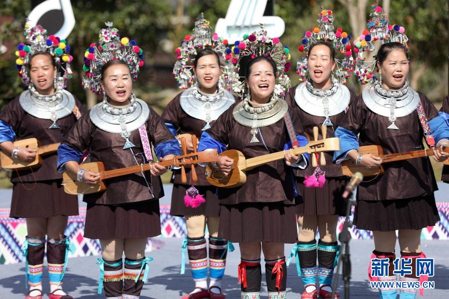 當日,廣西三江侗族自治縣舉辦“看家鄉風貌 話小康生活”侗族琵琶歌表演賽,當地17支代表隊近200名侗族琵琶歌手同臺競技,歌唱脫貧攻堅給家鄉帶來的新變化。
