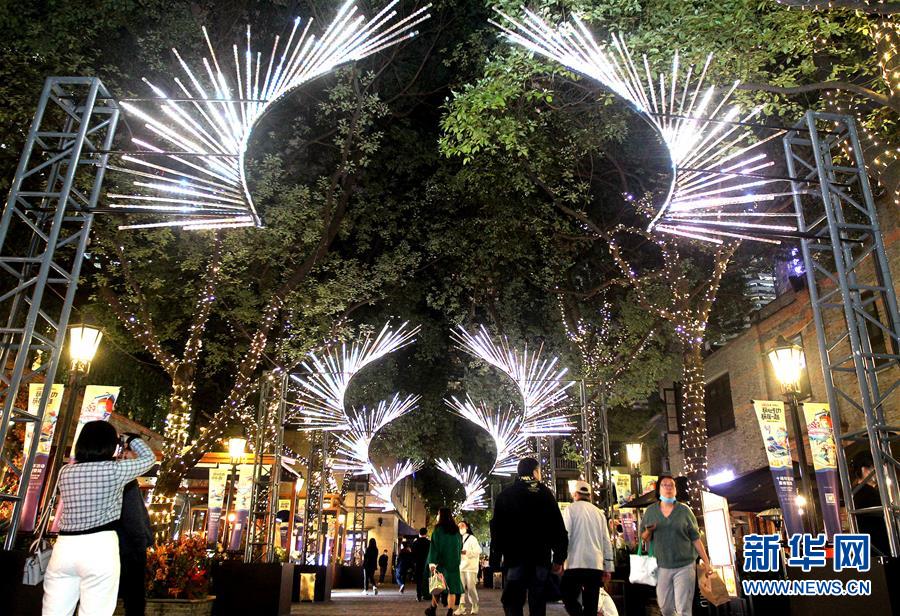 11月16日,主題為“光之翼”的彩燈在上海新天地綻放。 當日,“2020光影上海”燈光藝術節在上海新天地揭幕,由國內外藝術機構設計制作的一批光影藝術裝置亮相,助力申城夜間經濟。 新華社記者 陳飛 攝