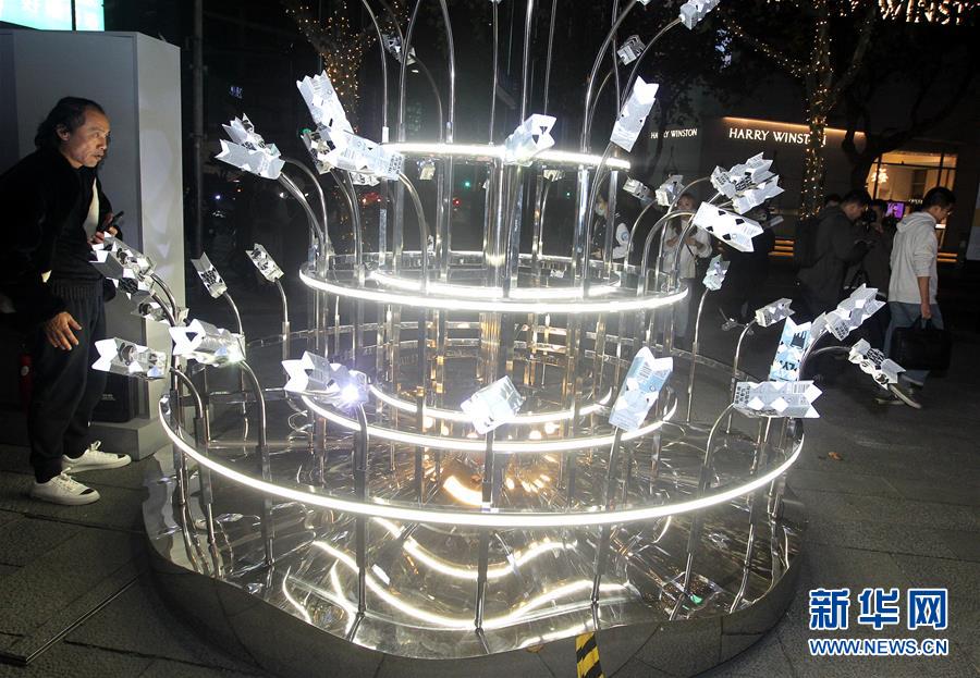 11月16日在上海新天地拍攝的主題為“風吹麥浪”的彩燈。 當日,“2020光影上海”燈光藝術節(jié)在上海新天地揭幕,由國內外藝術機構設計制作的一批光影藝術裝置亮相,助力申城夜間經濟。 新華社記者 陳飛 攝