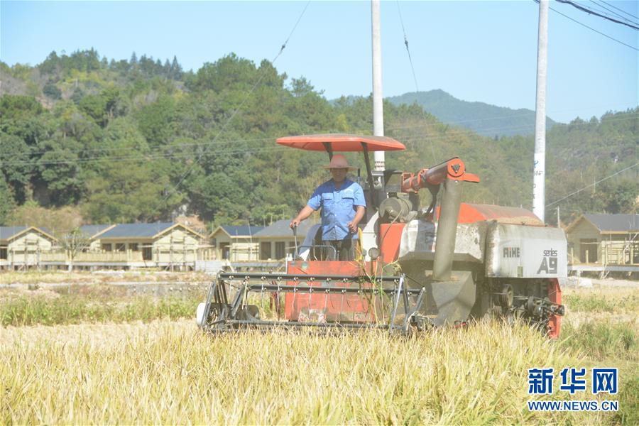 11月13日,在福建省連城縣塘前鄉水源村,一名農戶駕駛收割機收割水稻。 新華社記者 張華迎 攝