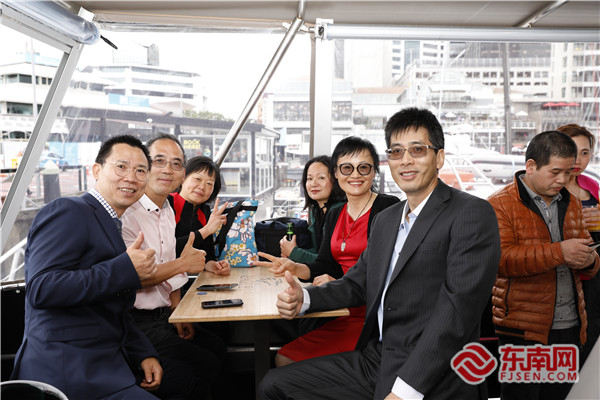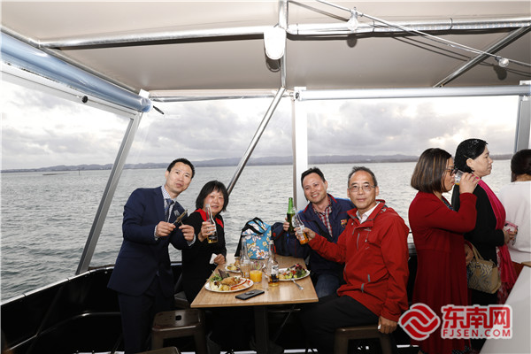 當天下午6點鐘,鄉親們在奧克蘭海港拍攝了一張“全家福”后,就排隊登上了觀光游艇,開啟了紀念新西蘭福建同鄉會成立25周年的第二場活動,游艇觀光之旅。在游艇上,鄉親們找到了各自合適的位子,挑選了自己喜歡的飲料酒水,感受著清涼的海風拂面,相互問候交談。