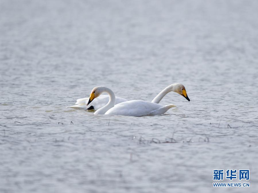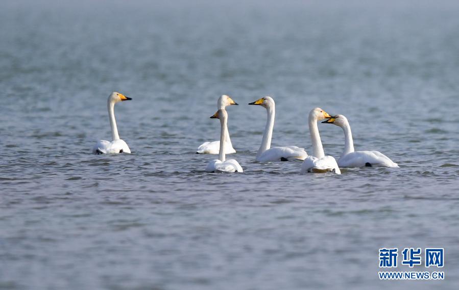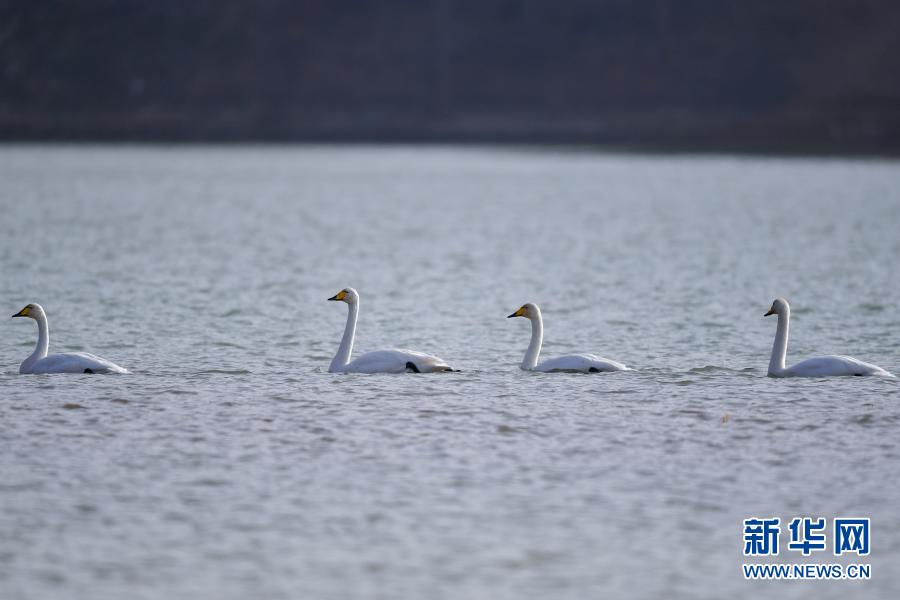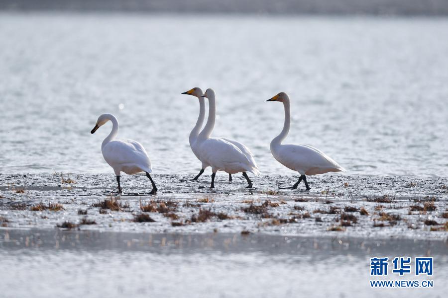 12月2日在青海省海東市化隆回族自治縣黃河岸邊拍攝的天鵝。