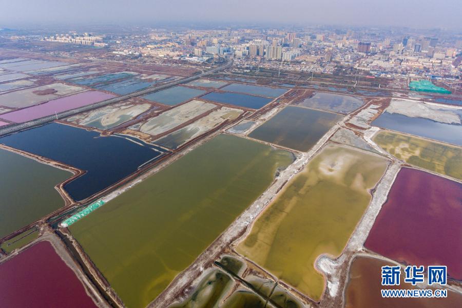 冬日里,從空中俯瞰山西運城鹽湖,色彩斑斕,風景如畫。新華社記者 楊晨光攝