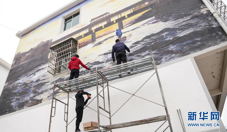 12月4日,畫師在黎川縣的村莊繪制墻畫。新華社記者 胡晨歡 攝