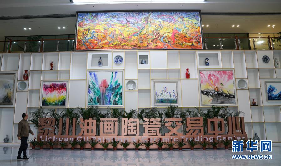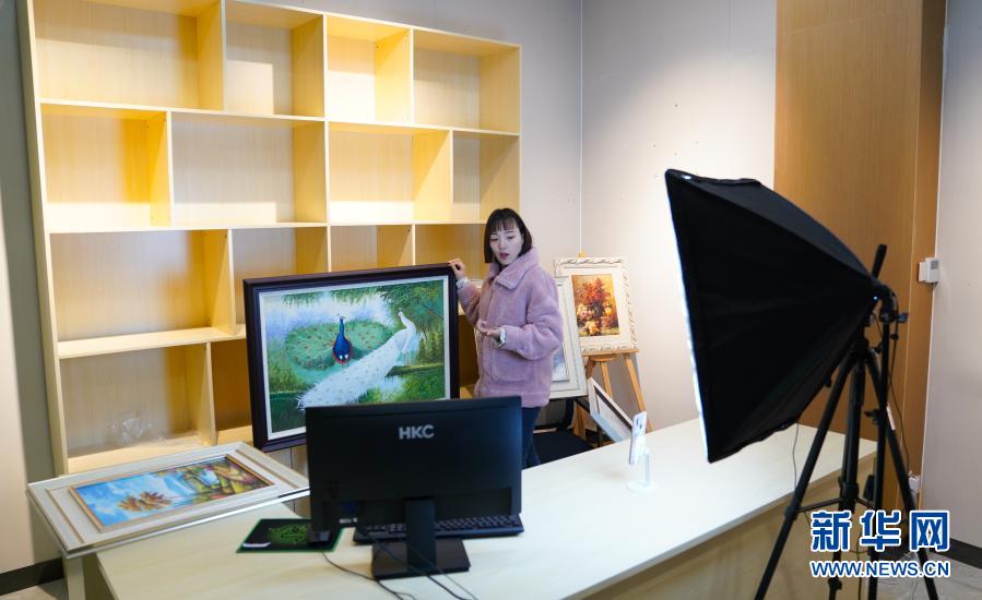 12月4日,工作人員在黎川油畫陶瓷交易中心通過互聯網推銷油畫產品。新華社記者 胡晨歡 攝