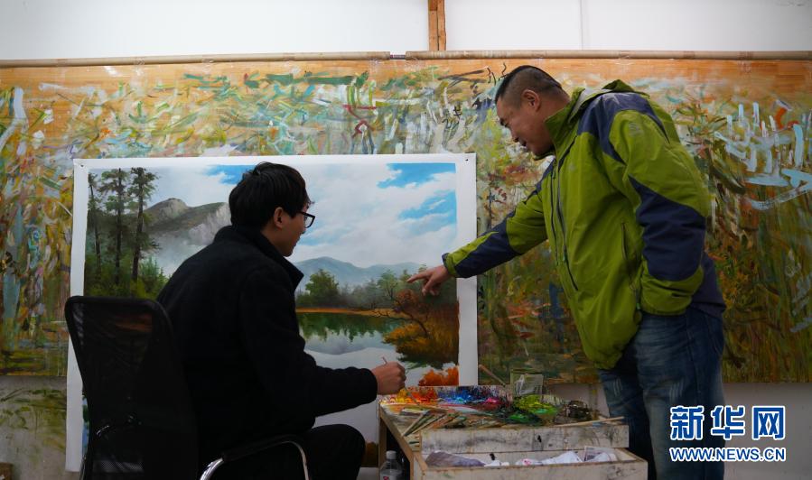 12月4日,學生在黎川縣油畫創意產業園內創作。新華社記者 胡晨歡 攝