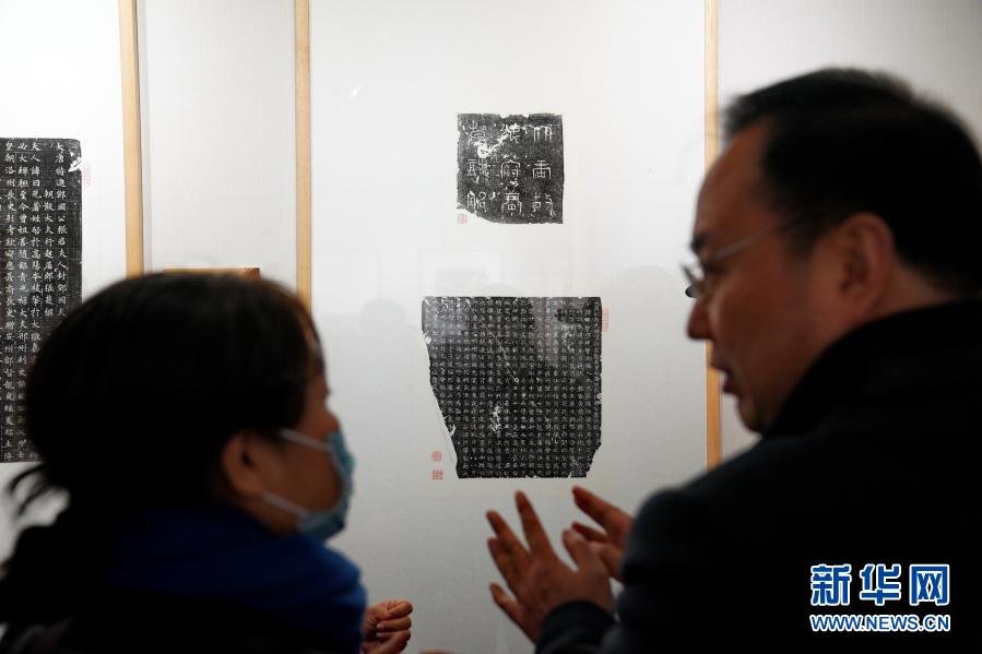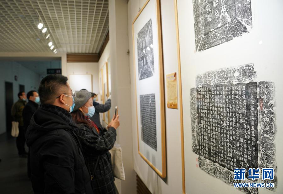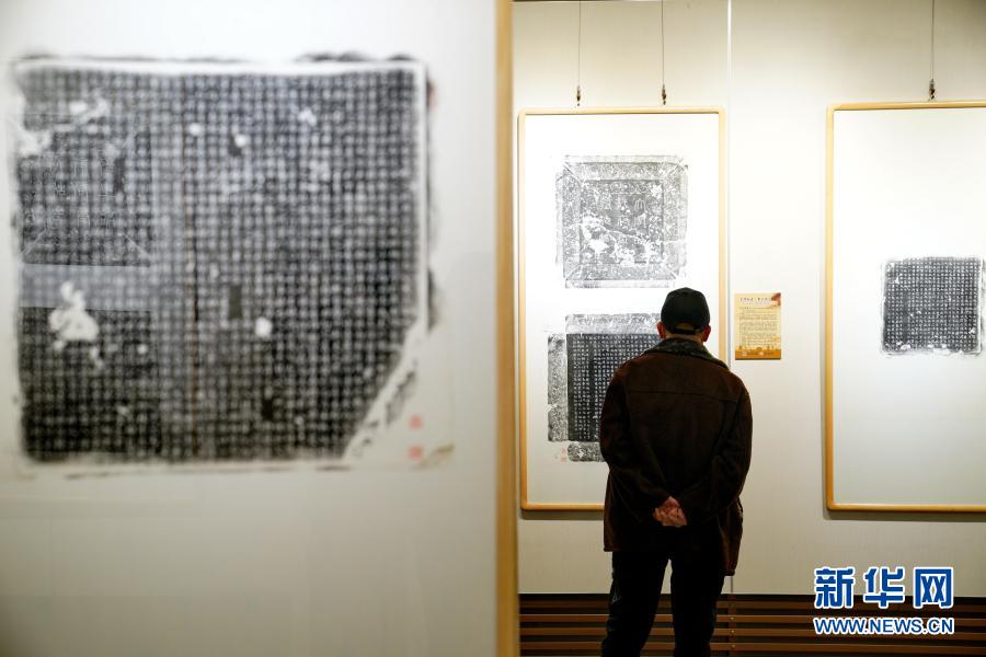 12月6日,參觀者在觀看“唐碑風華 墨韻流芳——‘師造化’唐代碑刻精品拓片展”。