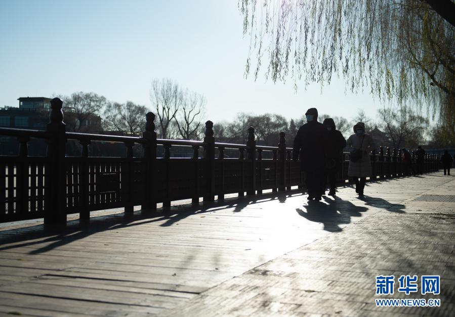 12月13日,游人在什剎海景區散步。