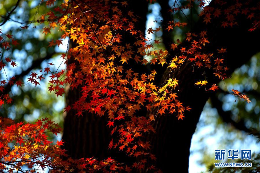 12月15日,在上海閔行區(qū)莘莊公園拍攝的楓葉。