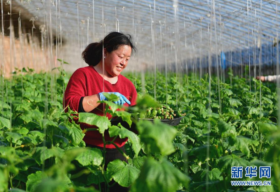 12月14日,村民在館陶縣黃瓜小鎮(zhèn)采摘黃瓜。