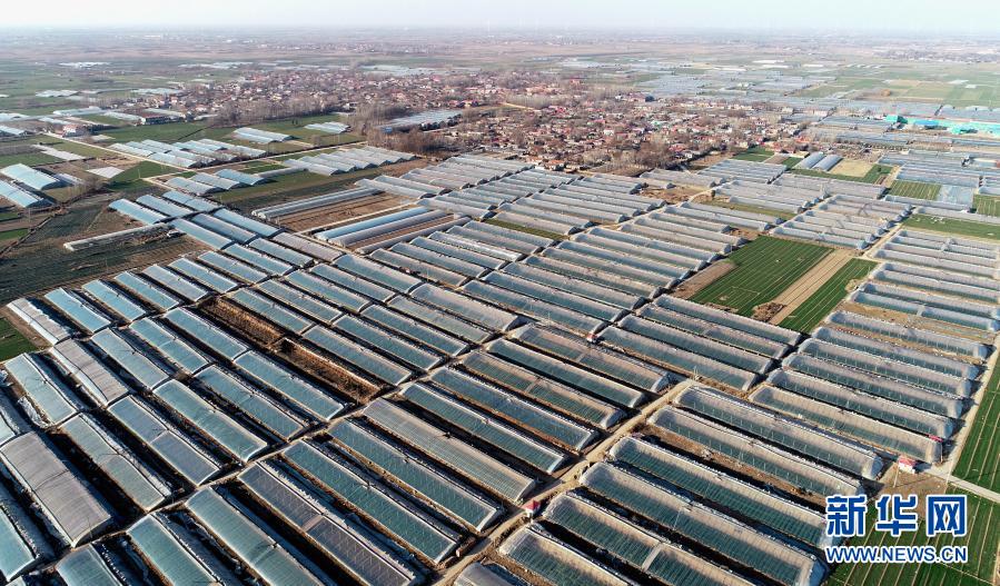 這是12月14日拍攝的館陶縣黃瓜小鎮的黃瓜大棚(無人機照片)。