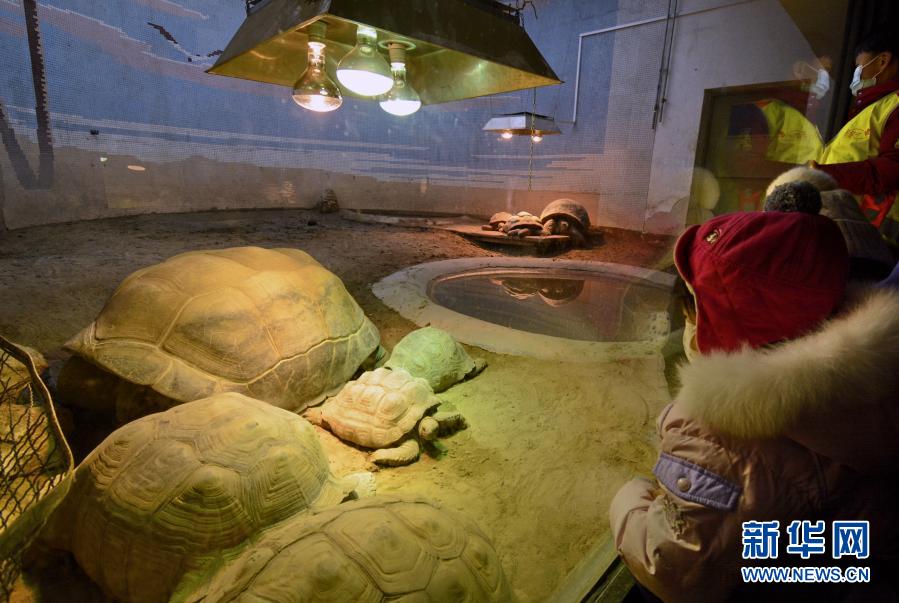 12月20日,兩棲爬行館里的動物在“享受”浴霸帶來的溫暖。