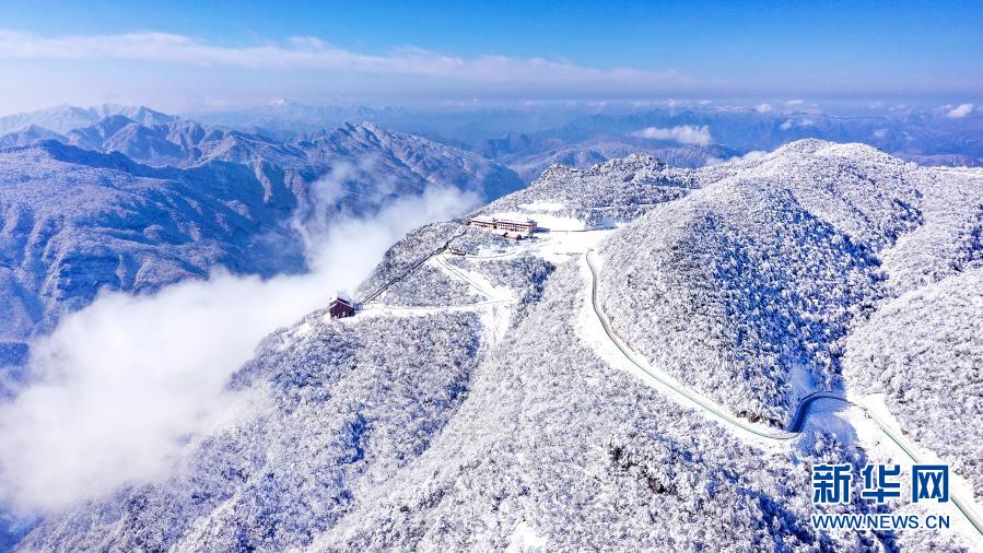 12月20日拍攝的雪后初霽的龍頭山景區(無人機照片)。