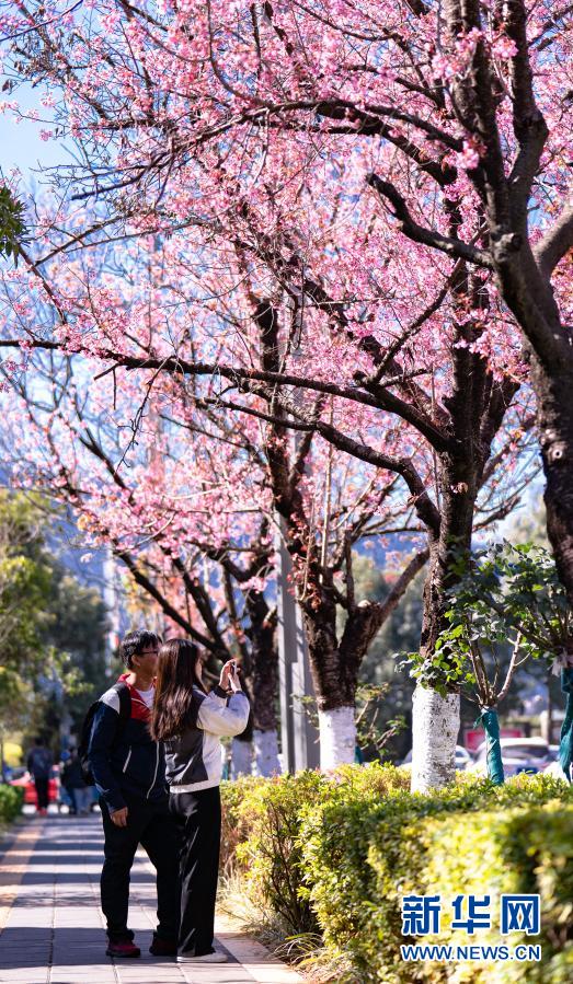 新年伊始,云南昆明市的冬櫻花盛開,引人駐足。