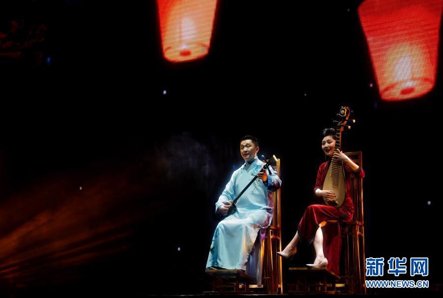 1月5日,在發(fā)布會現(xiàn)場,上海評彈團的演員在表演評彈《花好月圓》片段。