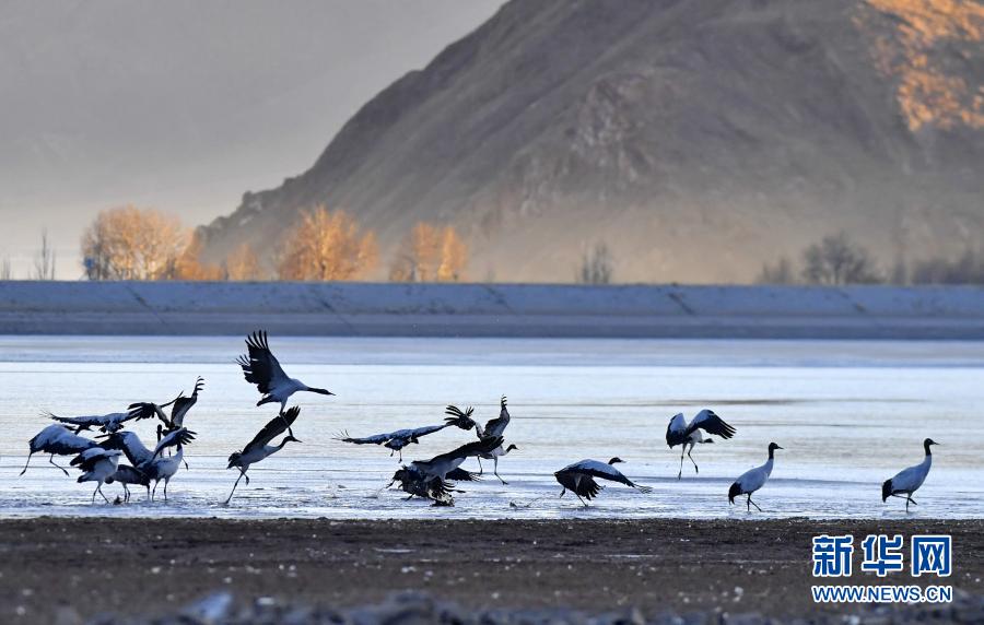 冬日,大批黑頸鶴在西藏拉薩市林周縣境內棲息、覓食。 林周縣黑頸鶴自然保護區建立于1993年,2003年被設立為國家級自然保護區,是雅魯藏布江中游自然保護區的核心部分,在每年的11月底至12月初,這里便會迎來成群的黑頸鶴過冬。