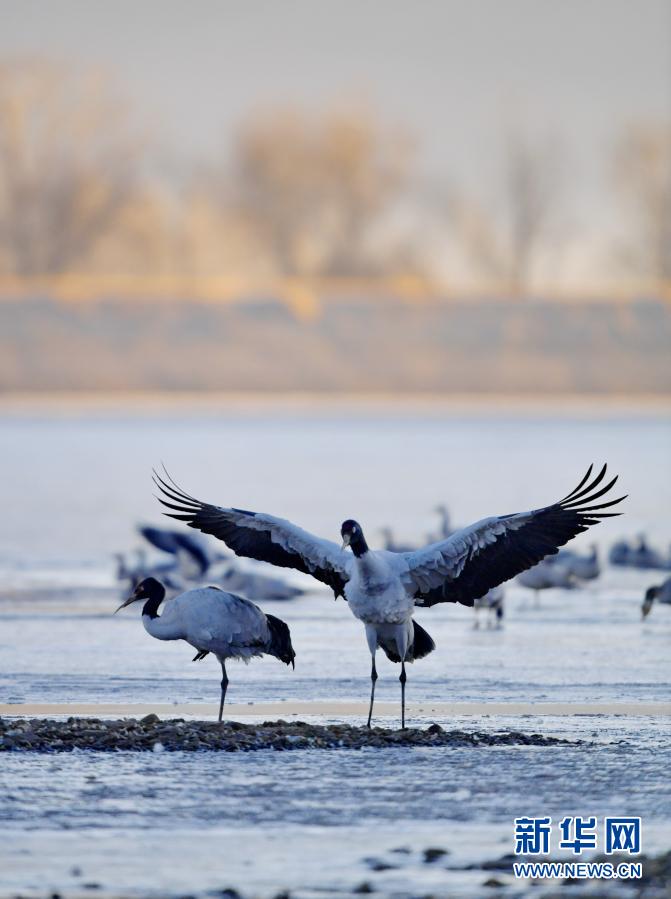 冬日,大批黑頸鶴在西藏拉薩市林周縣境內(nèi)棲息、覓食。 林周縣黑頸鶴自然保護(hù)區(qū)建立于1993年,2003年被設(shè)立為國家級(jí)自然保護(hù)區(qū),是雅魯藏布江中游自然保護(hù)區(qū)的核心部分,在每年的11月底至12月初,這里便會(huì)迎來成群的黑頸鶴過冬。