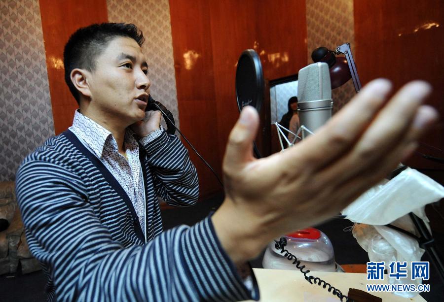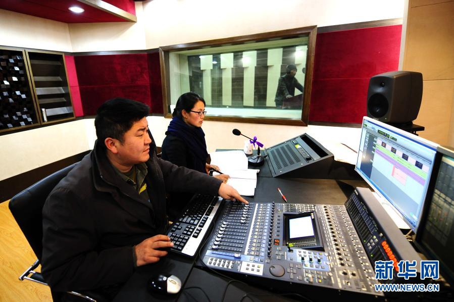 2009年9月29日,西藏電視臺藏語配音員在給電視劇配音。新華社記者 覺果 攝
