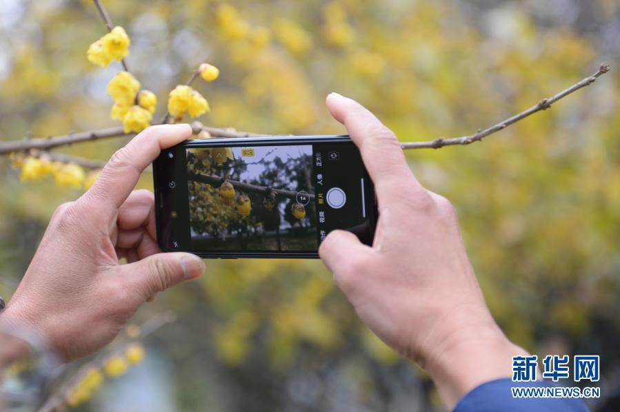 新年伊始,湖南省長沙市橘子洲景區梅園內的臘梅凌冬盛開,花香芬芳,吸引游客駐足觀賞。